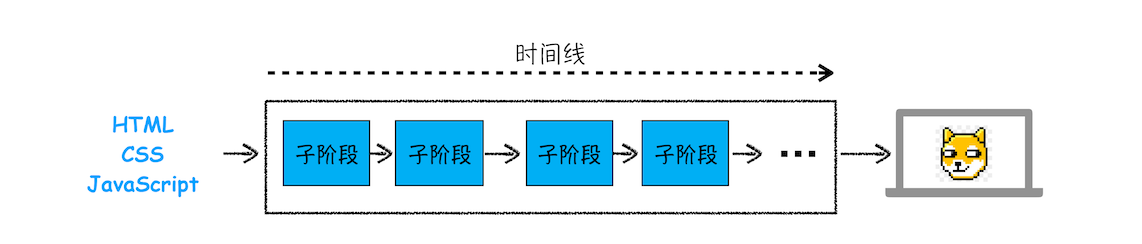 由于渲染机制过于复杂,所以渲染模块在执行过程中会被划分为很多子阶段,输入的 HTML 经过这些子阶段,最后输出像素。我们把这样的一个处理流程叫做渲染流水线,其大致流程如下图所示: