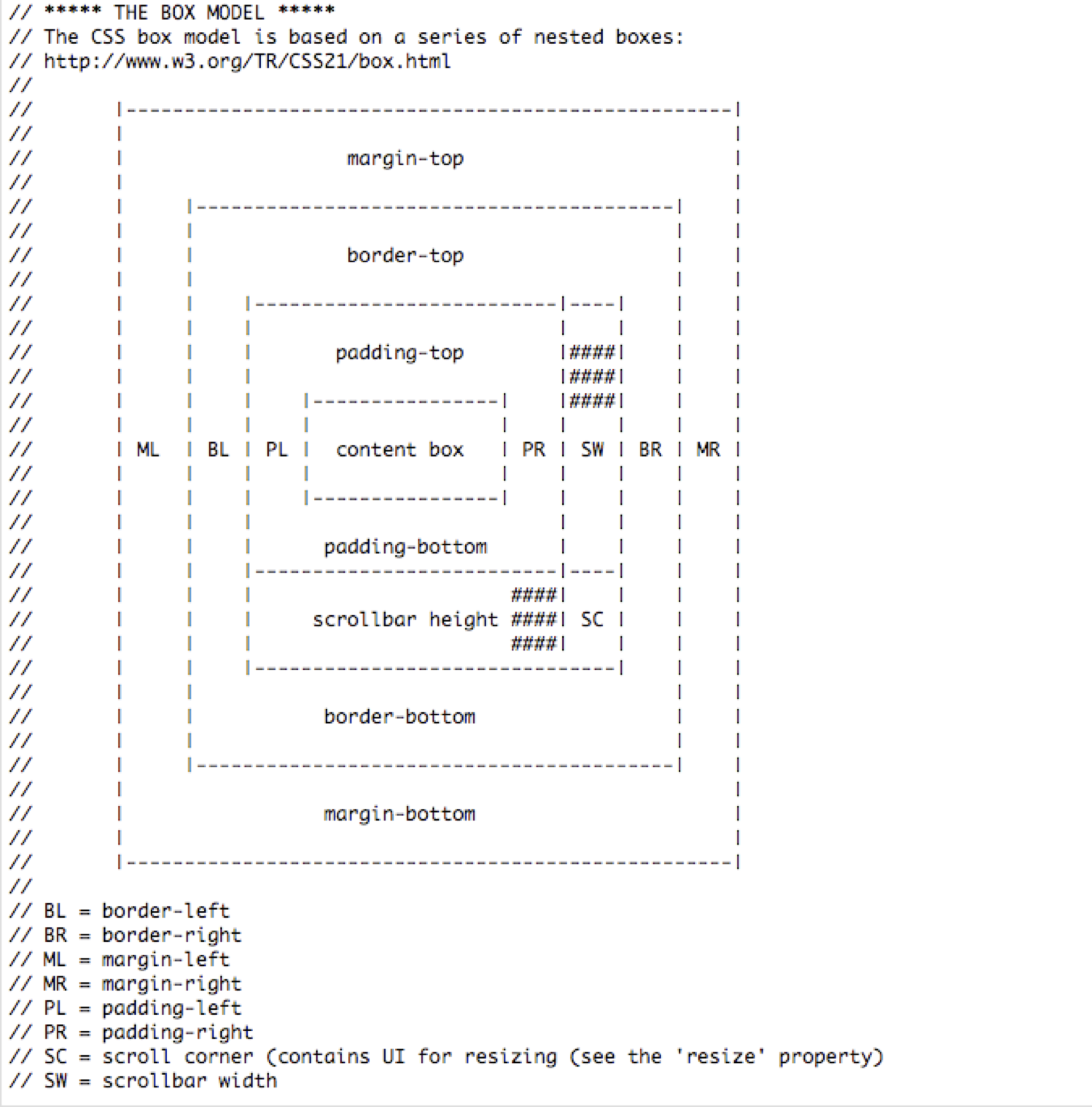 在 Blink(Chrome 的渲染引擎)的源码注释里面,很形象地画出了盒模型图(连滚动条都画出来了)。有了这一个个盒,浏览器就需要将这些盒像活字印刷术那样,按照规则排列起来,也叫”排版“。